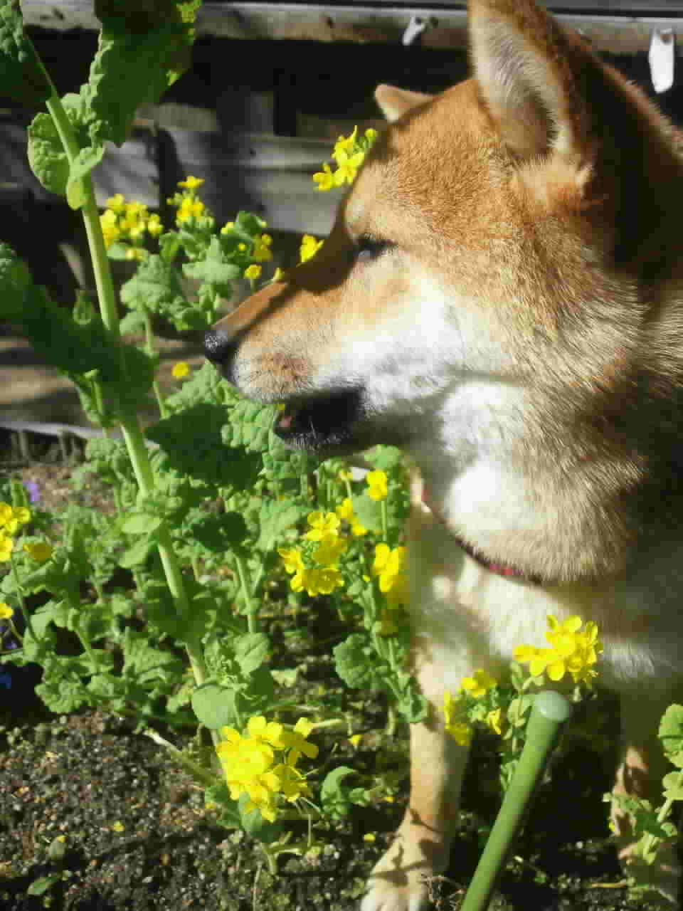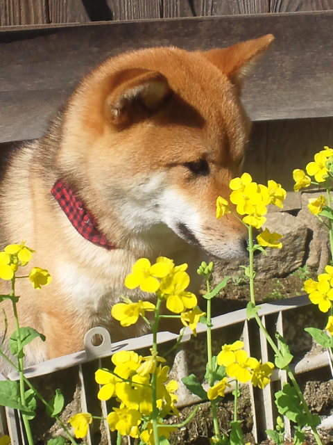 甘い匂いがわかるのか、花に鼻を近づけるさくら。