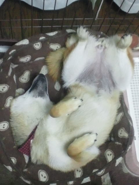 さくらちゃんのへそ天は、なんだかお行儀がいい(?)です。うちの子はでろ~んって感じ・・・いかにも暑そうです(笑)
