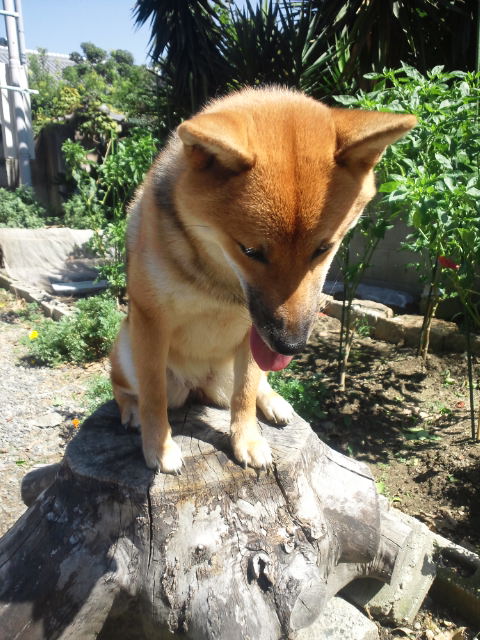 久しぶりに切り株椅子にさくらを乗せてみました。