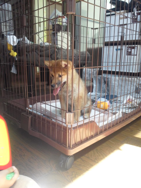 子供達がさくらのご飯を準備している間ずっと暴れて吠えてます。