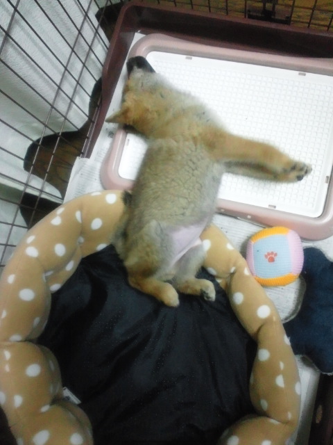 わが家に慣れてきたのでしょうか、お腹を見せて寝ています。