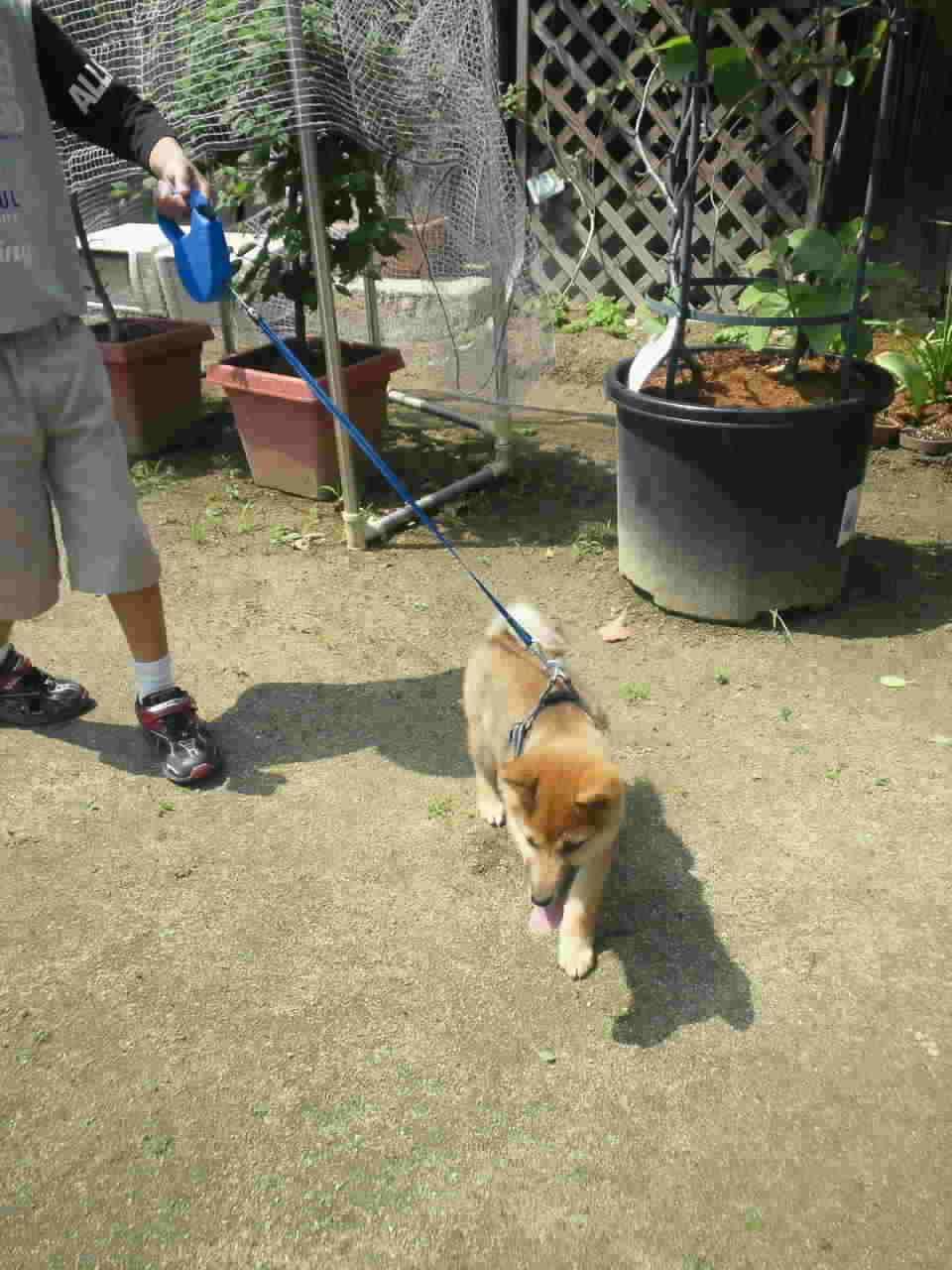 新しいリードを買って来たので、こちらも久々にお庭の散歩。