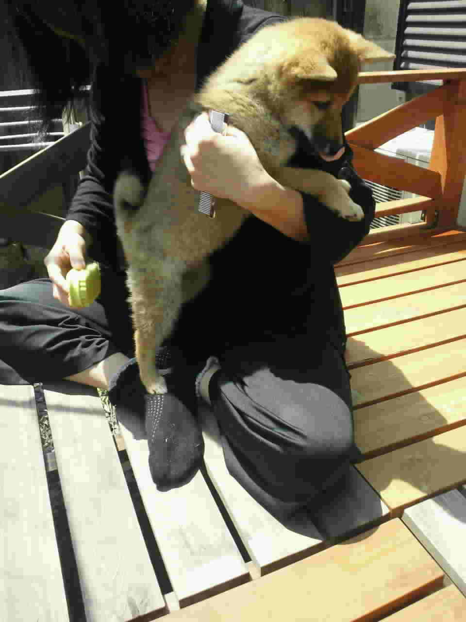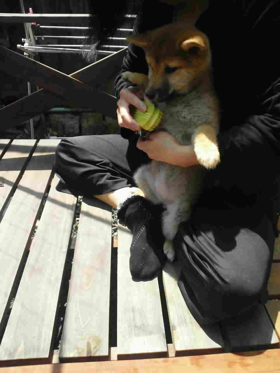 ママが丁寧にブラシをかけてやろうとするのですが、遊びたいさくらはじっとしてませんf^_^;