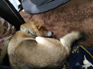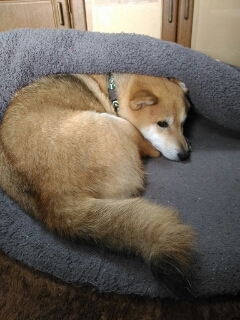 柴犬さくら、しょっちゅう丸まっています。