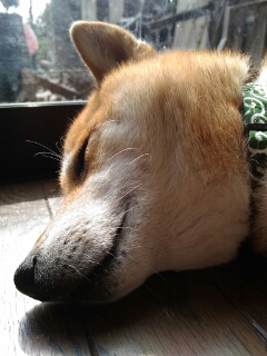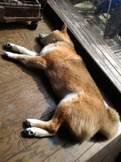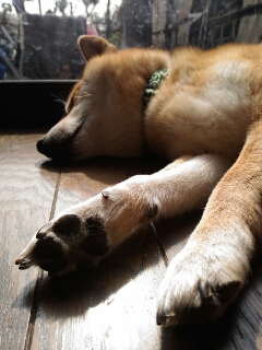 最近は、日向でお昼寝が日課の柴犬さくら。