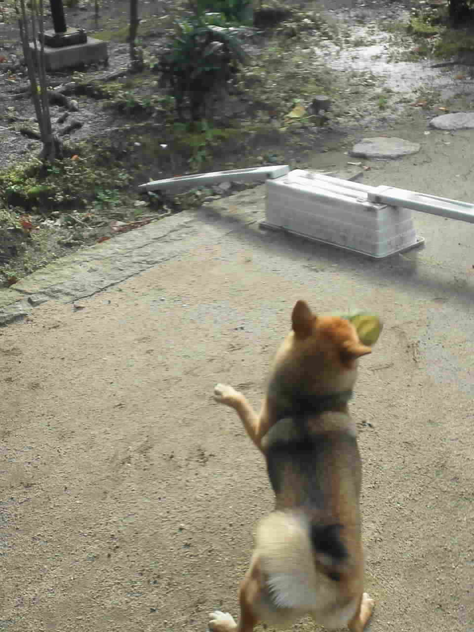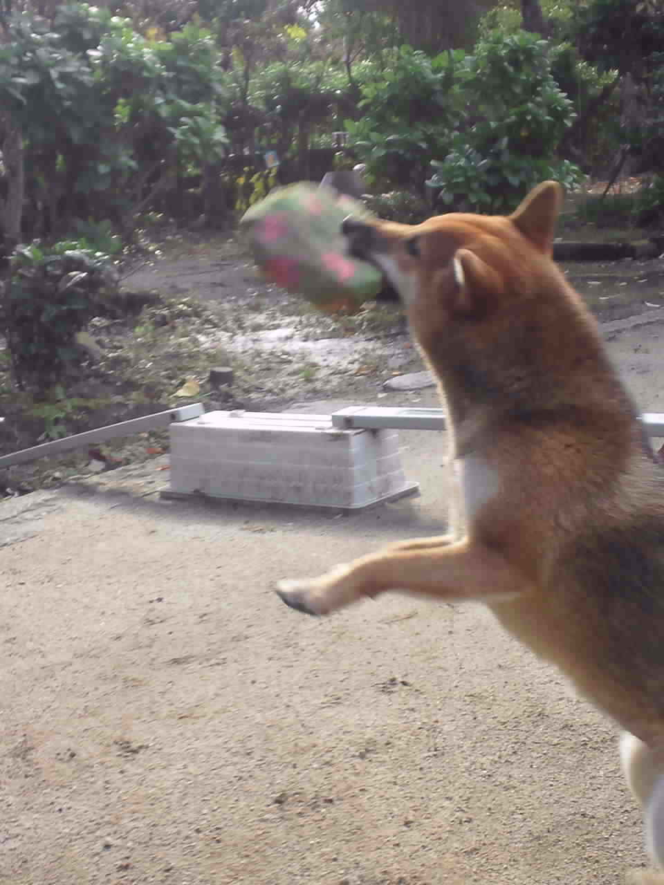 空中キャッチの確率が、まだまだ低い柴犬さくらに