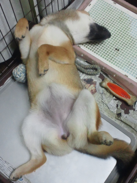 なぜか、さくらは我が家に来た子犬の時から「へそ天」。