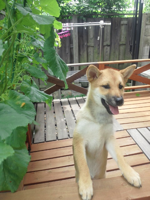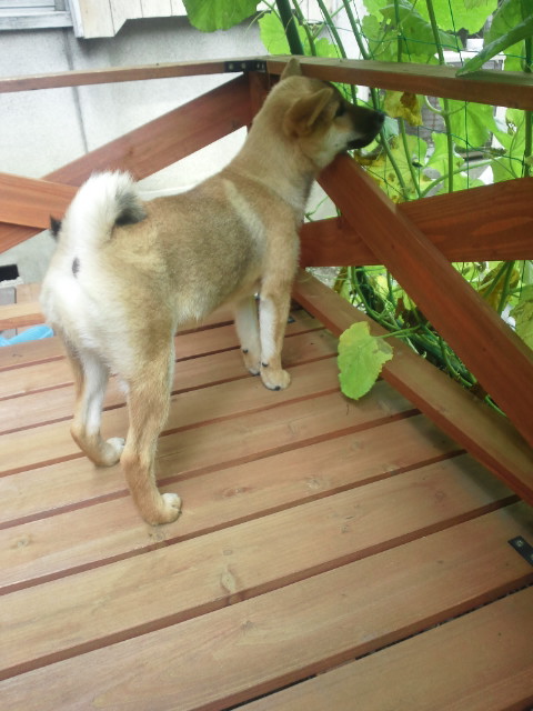 さくらは、まだ小さいので、ウッドデッキの階段を下りて来れないのです。
