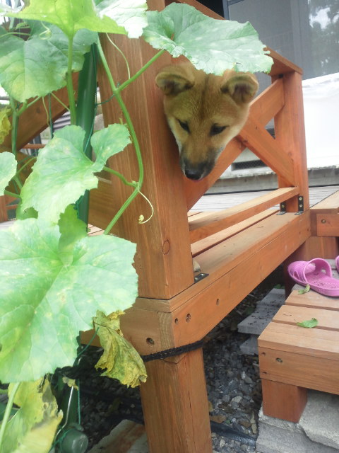 ウッドデッキにほったらかしにしておくと、やはり気になるグリーンカーテン!