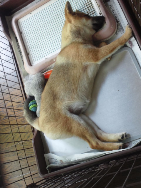 その後、少し走ってサッカーボールで遊んだら、バテたのか座り込んでましたf^_^;