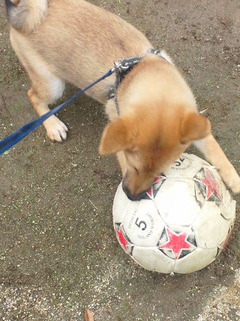 ボールを蹴ると走って行って飛びつきます。