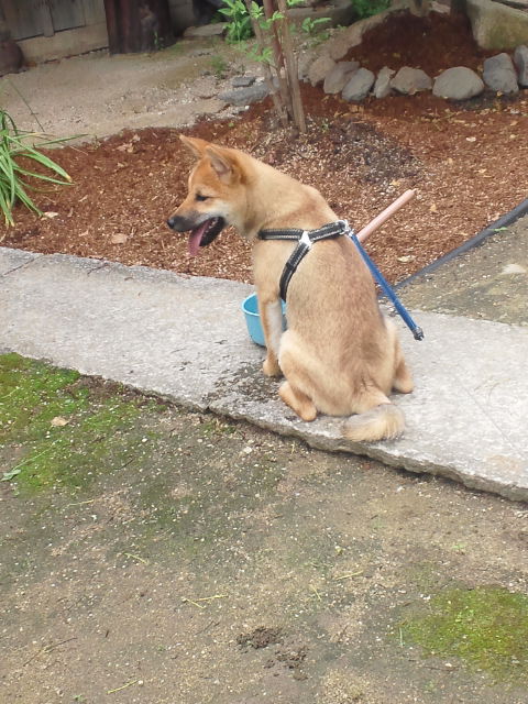 庭で遊んだ後のせいか、お疲れの柴犬さくら。
