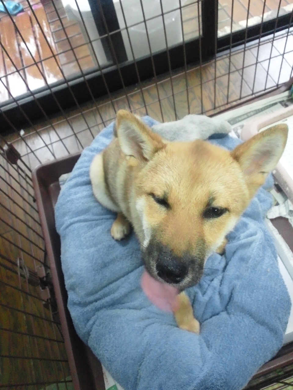 何となく台風が近づいてるのが判るのでしょうか、時折外を見つめては不安そうな顔してます。