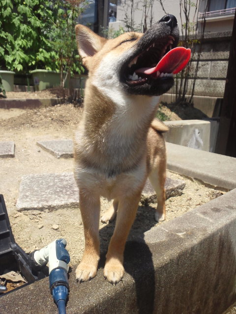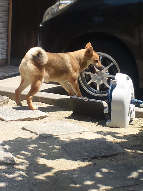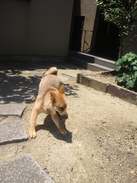 初めこわごわでしたが、すぐに慣れた柴犬さくら。