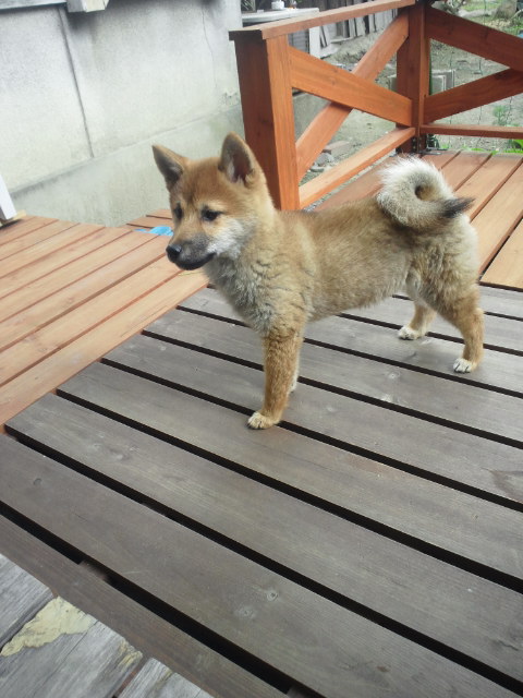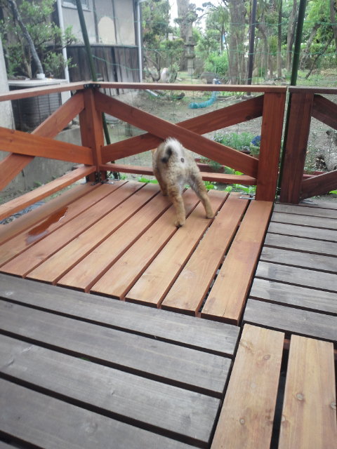 大好きなウッドデッキに出してやると、直ぐに元気いっぱい。