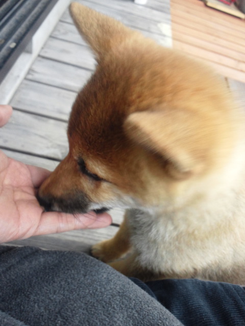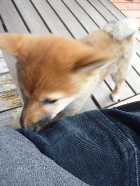 ポケットに犬のおやつを入れていたら嗅ぎ付けました。
