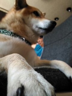邪魔しないで欲しいんだワンの柴犬さくらに、