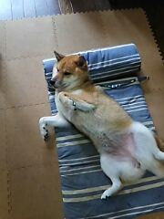 へそ天で枕姿。これはもう、さくらちゃんのお昼寝布団ですね♪