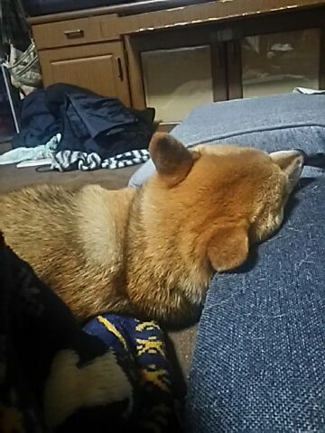 柴犬も枕するんだなぁ~なんて思いました。