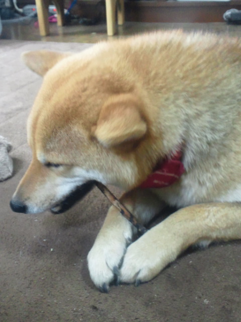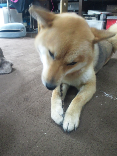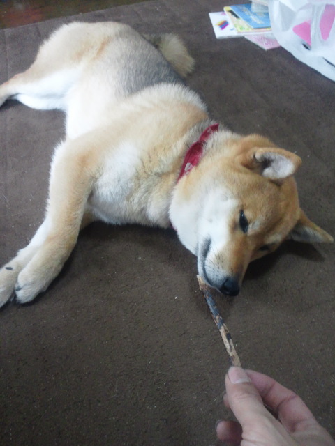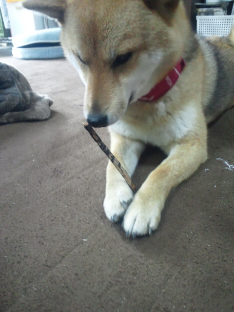 普段、そんなに枝に執着しない柴犬さくらですが…