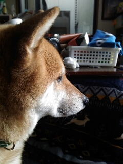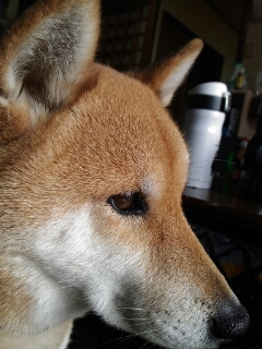 デモ、周囲の変化を聞き逃さないためにも、左右違った方向に向き異常の有無を察知しなければならない柴犬の宿命です。