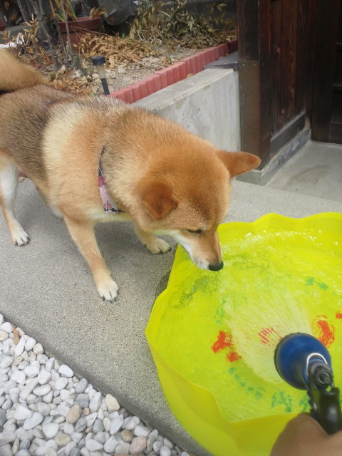 行水は遠慮するんだワンの柴犬さくらに