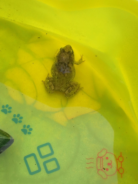 初めて、庭でカエルを見つけた娘、大興奮でした。