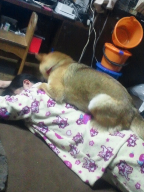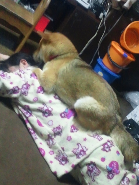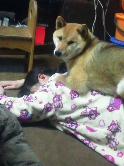 体温が高い柴犬さん、ぴったりくっ付くとホカホカ。