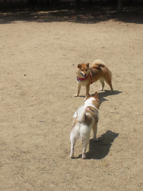 ビビりの柴犬さくらは、そうそうに退散f^_^;