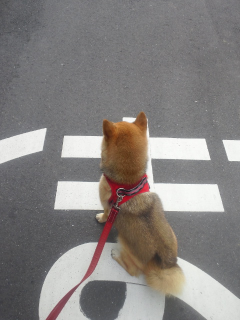 家の4柴も信号は座って待たせてます。