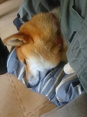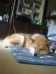 入院している間に、ごろ寝座布団で寝る事を覚えた柴犬さくら