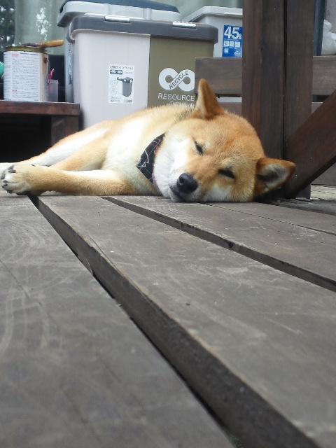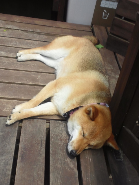 一度寝ちゃえば、陽向でも気にしない柴犬さくらですから…