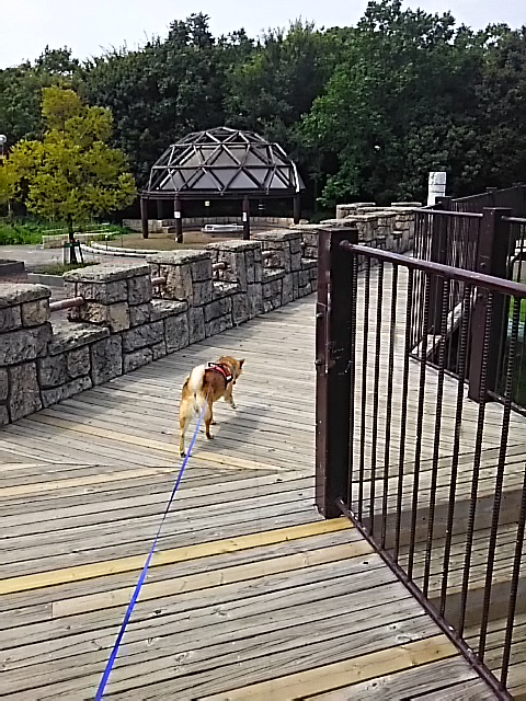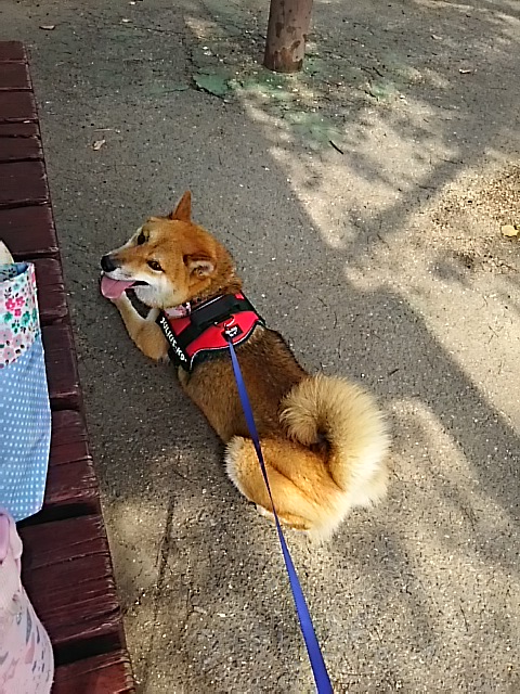 柴犬さくらは、遊具で遊ぶのが暑すぎらしい。