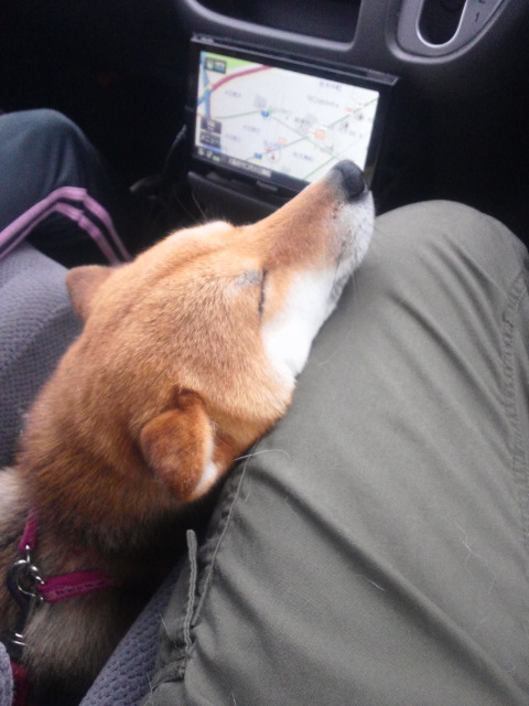 車に乗ると、疲れたのかこんな顔でした(笑)