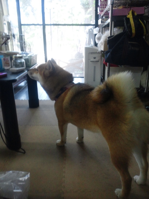 柴犬さくらが、珍しく机の上を気にしていました。