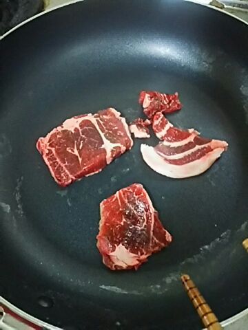 なので、スライスした猪肉(ロース)のヘタの厚くなってしまった部分を、焼きで!