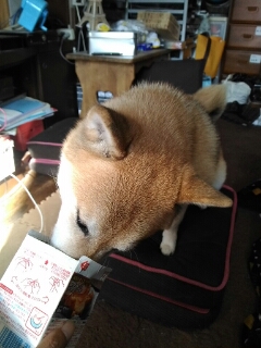 その空き箱を待ち焦がれていた柴犬さくら。