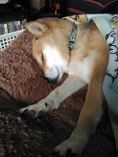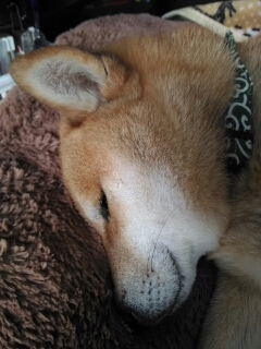ちゃんと耳だけは起きてるワンの柴犬さくらに、