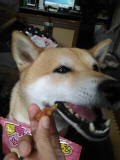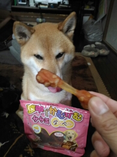 でも、オヤツを出されちゃ~吠えるのも忘れちゃうね。