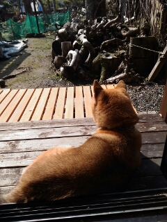 柴犬さくらも、ノンビリ縁側で番犬業務。
