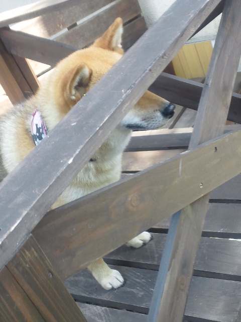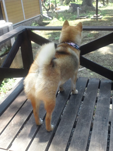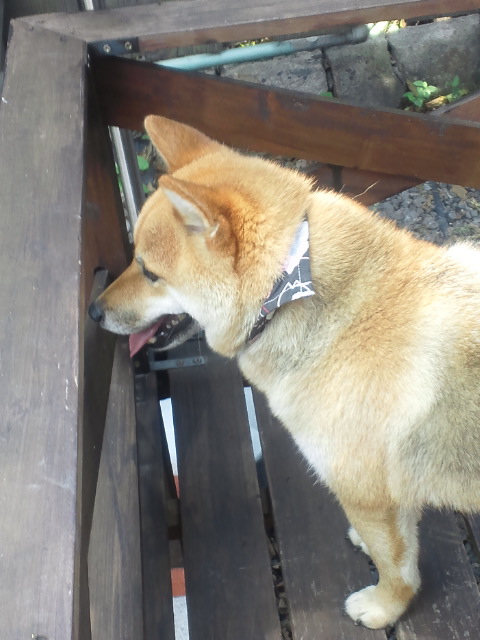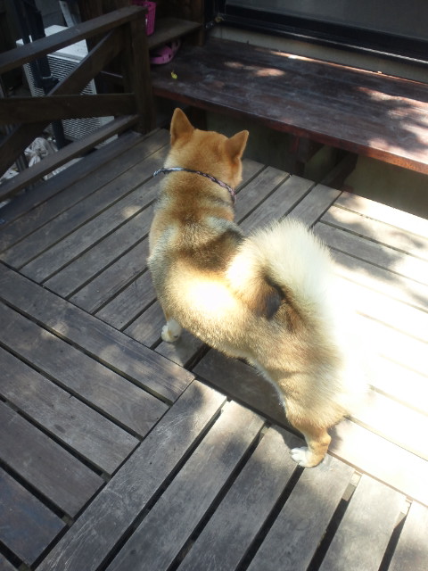 暑い日には、ほとんどウッドデッキから移動しない柴犬さくら。