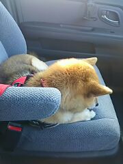 特等席のように車の中で寝ている姿が、かわいいですね。