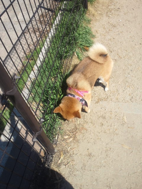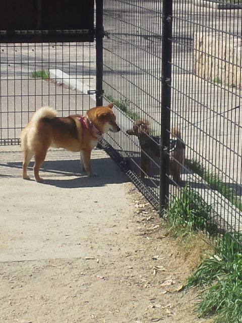 そんな柴犬さくらですが、壁の向こうのワンちゃんには強気