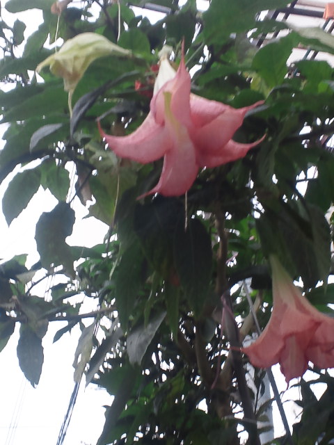 秋に咲く花なんだろうけど、木にぶら下がるように、大きく咲いてました。