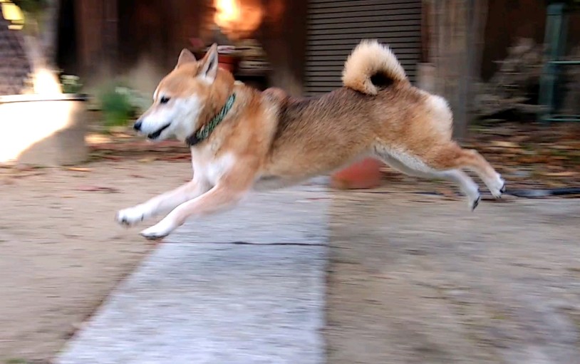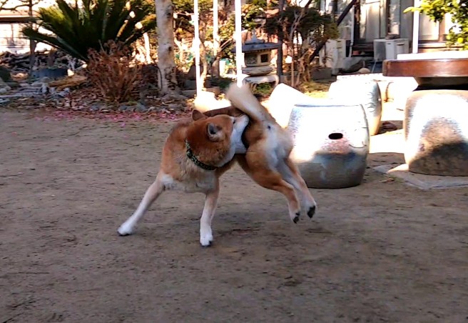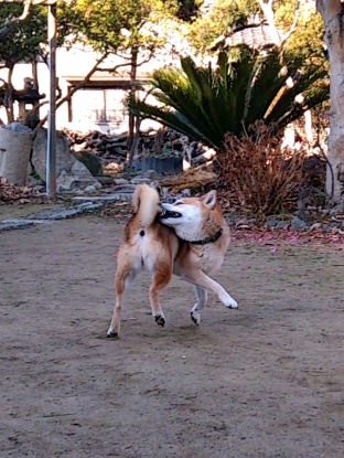 そして、飛んだ後は、尻尾とお戯れだった柴犬さくら。
