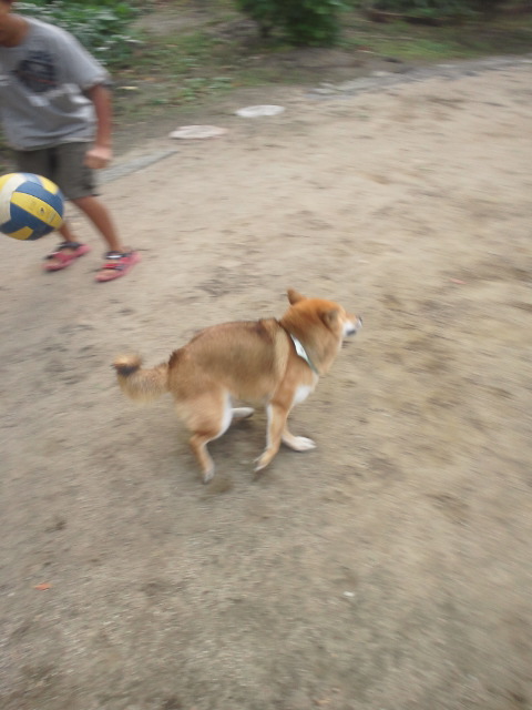 子供達とサッカーしていた柴犬さくら