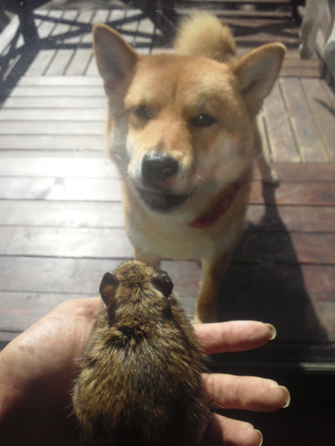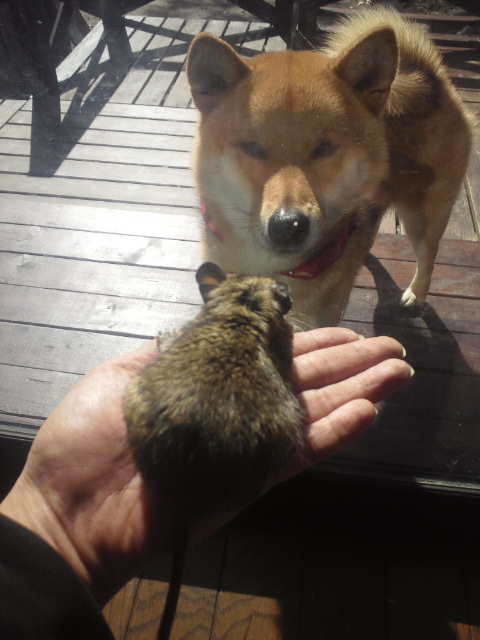 でも、なかなかツーショットが実現しない、柴犬さくらとデグーもみじ。
