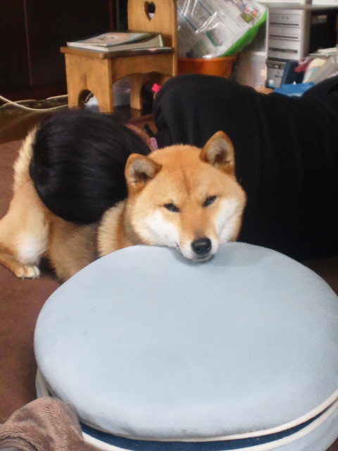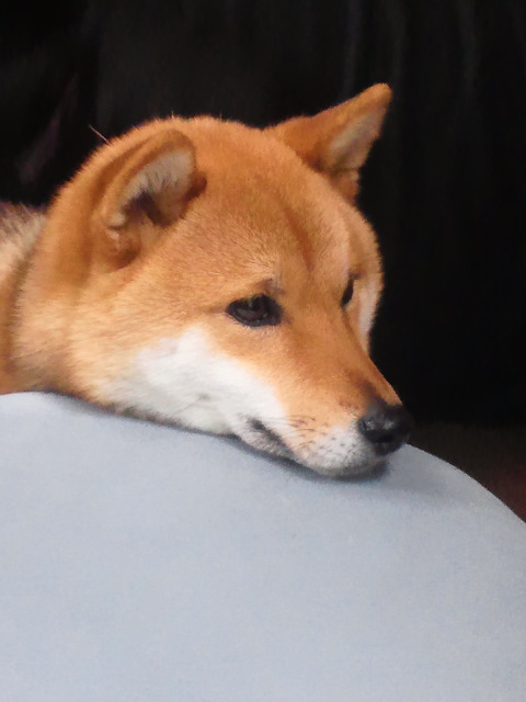 クッションに顎を乗っけてる柴犬さくら