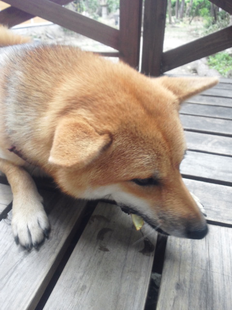 今日は、朝から遊びにも行かず、ずっとウッドデッキで待機していた柴犬さくら。
