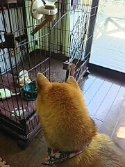 入るのと出るのでは、違うんだワンの柴犬さくらに